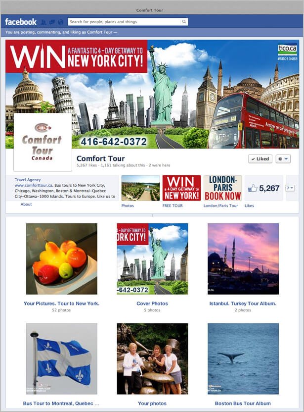 Comfort Tour is a well established and successful Canadian travel company that set up its Facebook profile on 17th April 2011. They followed the well known best practices for Facebook business use such as: